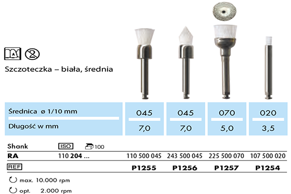 Standardowe (białe) szczoteczki do osadu oferowane są w czterech kształtach: