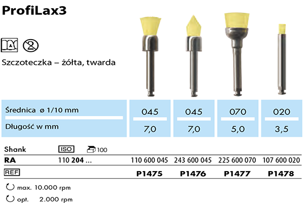 Bardzo twarda szczoteczka do ściągania osadów nazębnych. Należy stosować z pastą. Ze względu na jej twardość należy zachować szczególną ostrożność w okolicach dziąseł.