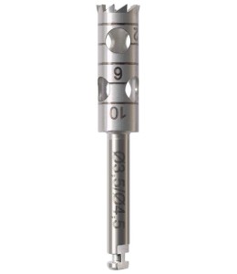 Wiertło ze stali chirurgicznej. Służy do pobierania bloków kostnych i usuwania implantów. Wszystkie warianty produktu przeznaczone są na mikrosilnik (RAL).