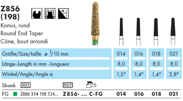ABACUS Z856 5 szt. wiertło diamentowe "zaokrąglony stożek"