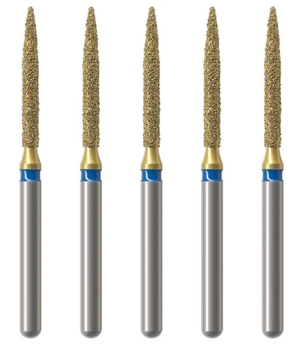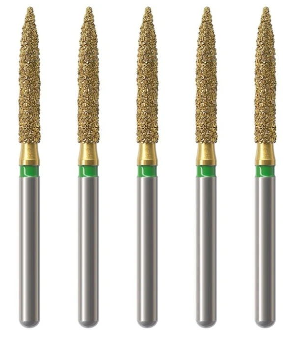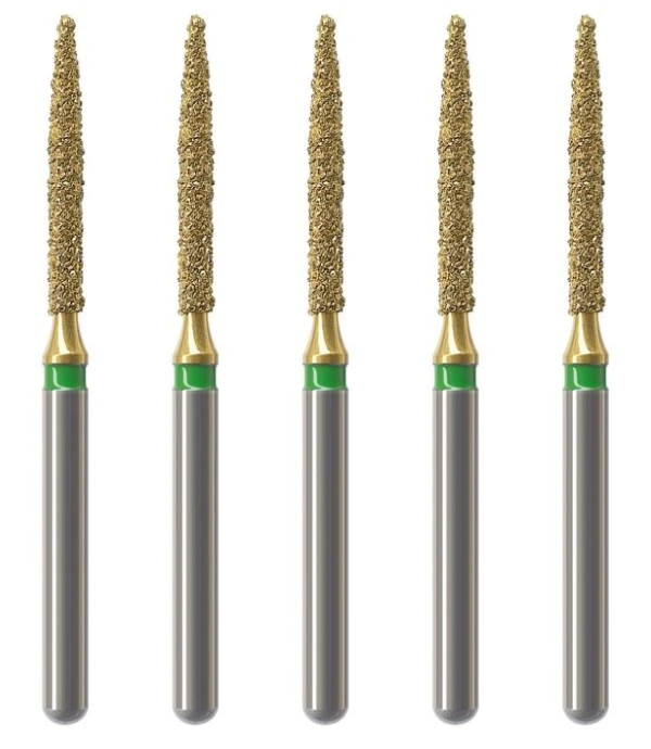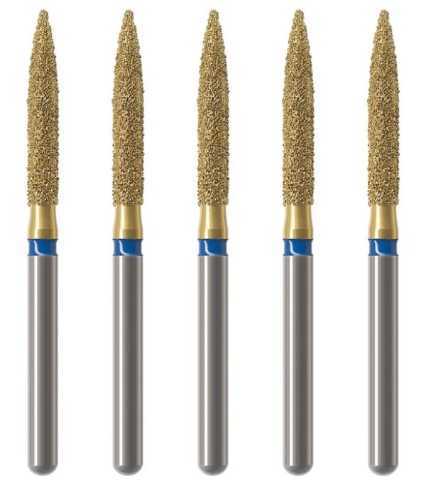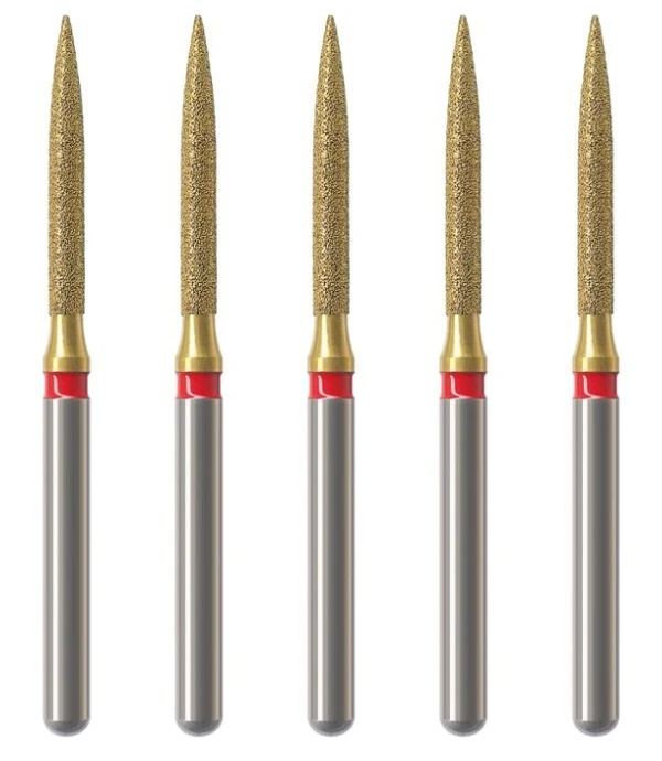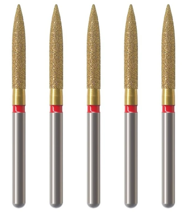 - F - czerwony, nasyp wygładzający, powinien być zawsze używany do wygładzania powierzchni szkliwa po jego opracowaniu oraz do wstępnego wygładzenia kompozytu przed użyciem finiru lub gumki