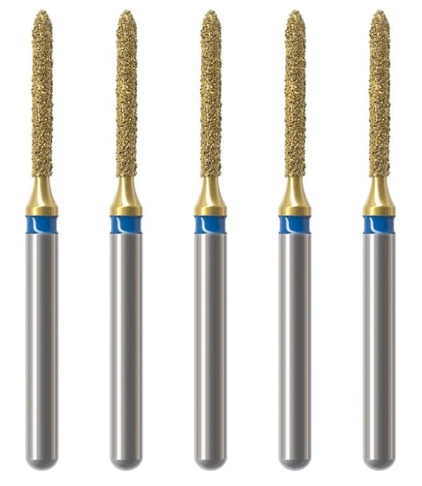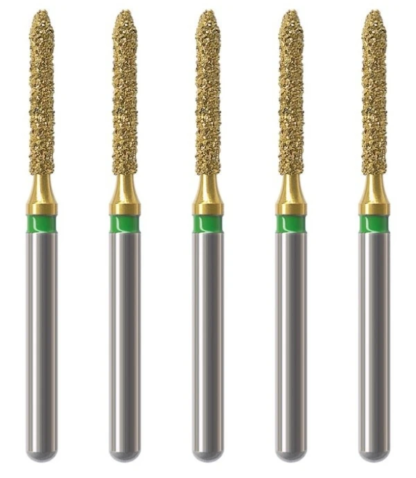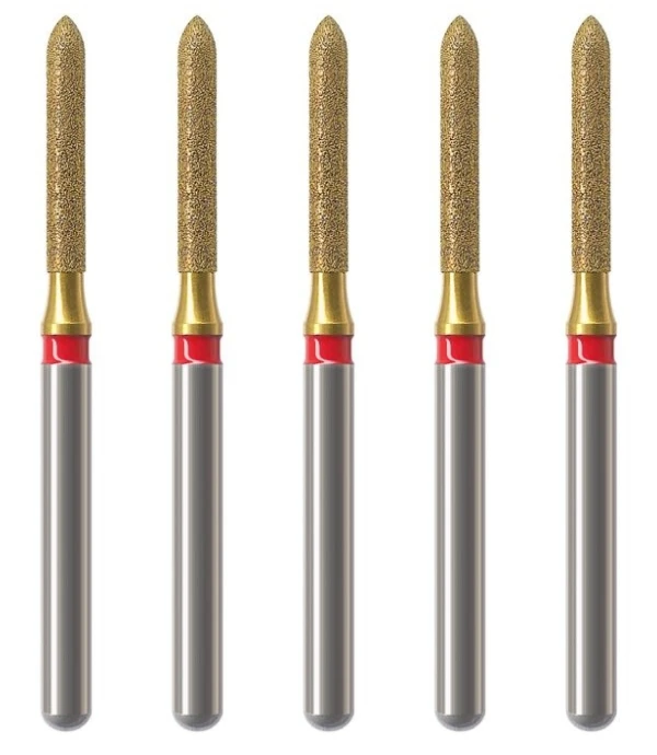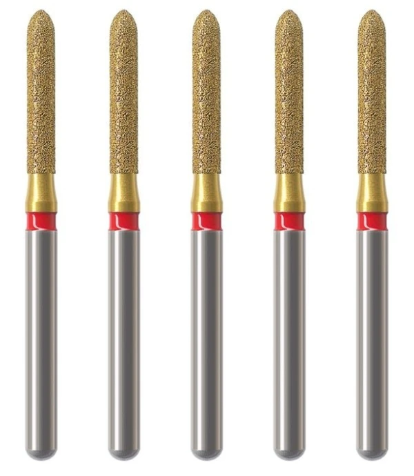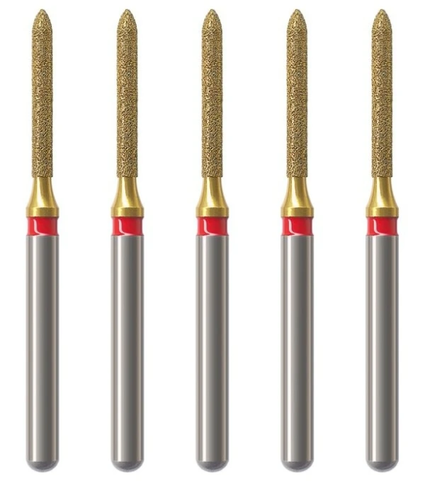 - F - czerwony, nasyp wygładzający, powinien być zawsze używany do wygładzania powierzchni szkliwa po jego opracowaniu oraz do wstępnego wygładzenia kompozytu przed użyciem finiru lub gumki