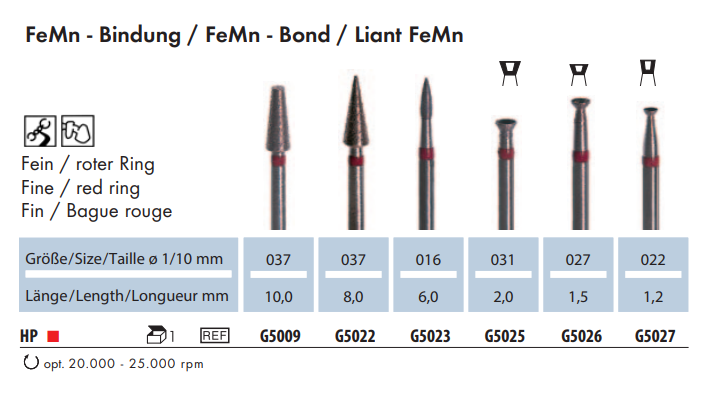 Frez G5022 oferowany jest w jednym rozmiarze 037 oraz jednym nasypie: