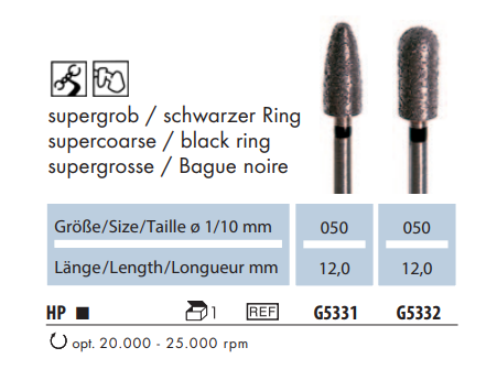 Frez G5331 oferowany jest w jednym rozmiarze 050 oraz jednym nasypie: