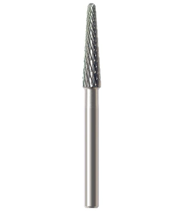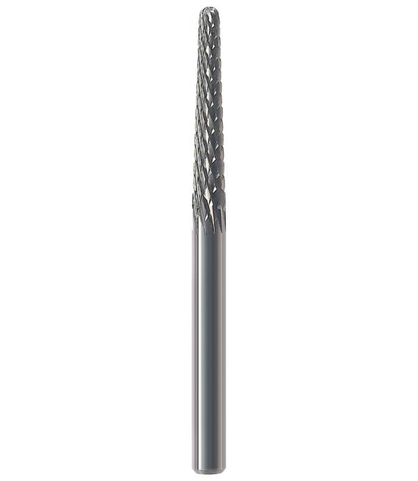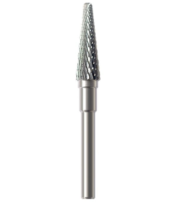 Frez wygładzający do tytanu i stopów metali. Jest to frez polerski z czołem okrągłym ze specjalnymi nacięciami krzyżowymi. Taki kształt czoła i nacięć zapewnia szybkie wygładzenie i wypolerowanie opracowywanej powierzchni.