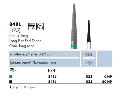 Frez diamentowy 848L "długi ścięty stożek" na prostnicę