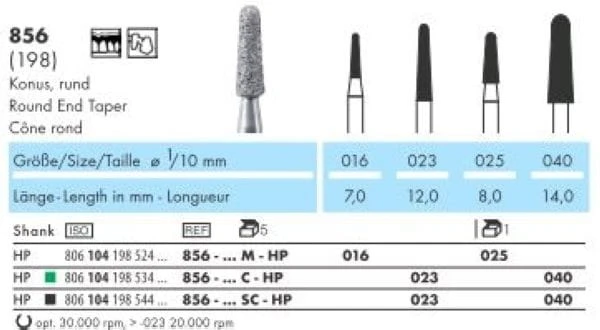 Frez diamentowy 856 "zaokrąglony stożek"