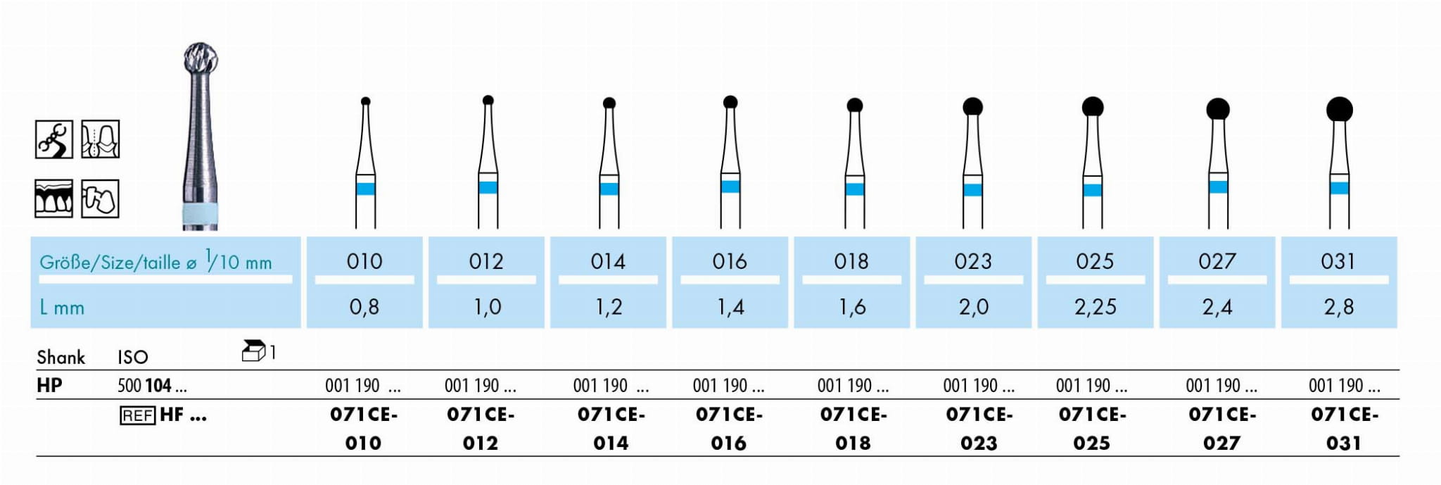 | L mm | 2,25 | 2,4 | 2,8 | 3,25 | 3,4 | 4,3 | 5,3 | 7,0 |