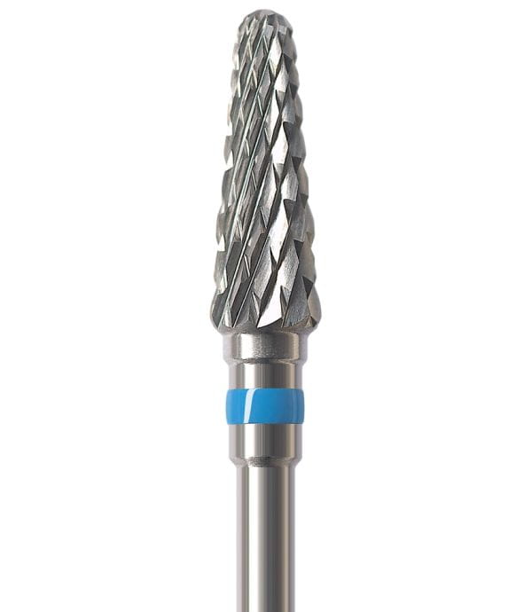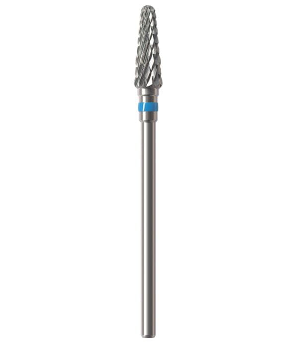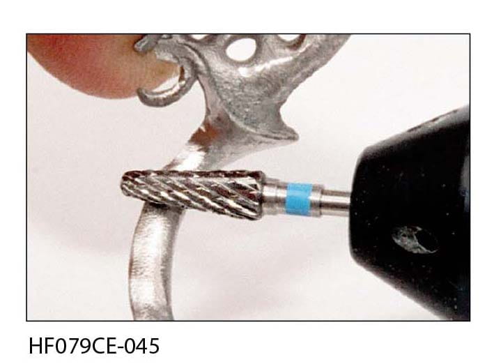 Frez HF079CE to stożek z niebieskim paskiem o ostrzach krzyżowych. Jest to jeden z najbardziej popularnych i uniwersalnych typów frezów. Służy do zbierania akrylu i metalu. Materiał po obróbce tego typu frezem wymaga wypolerowania polerką.