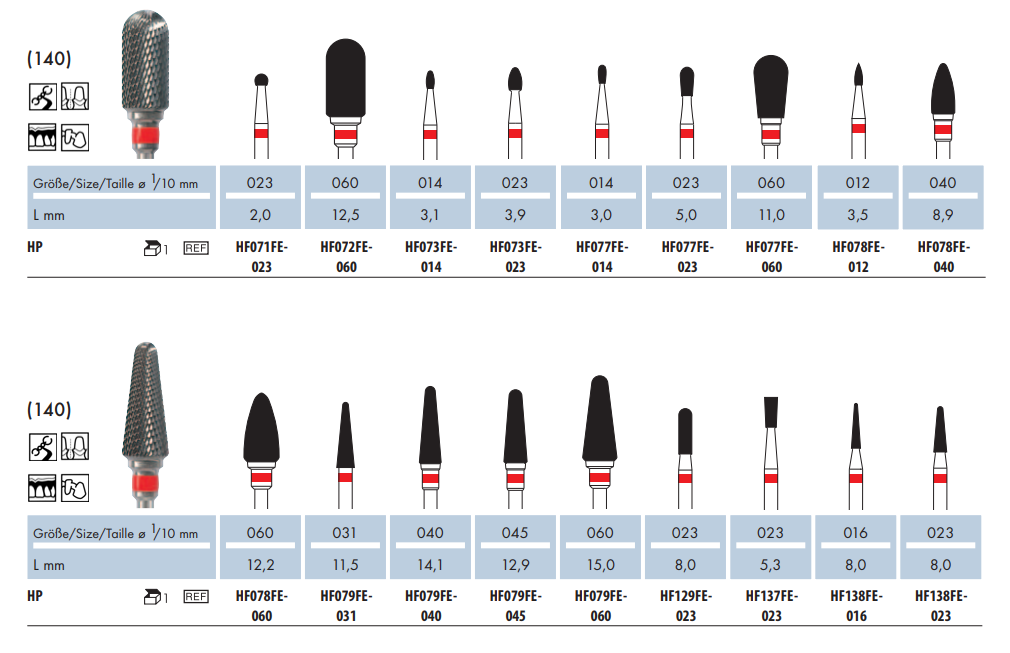 Frez protetyczny HF137FE-023 "odwrócony stożek" do metalu