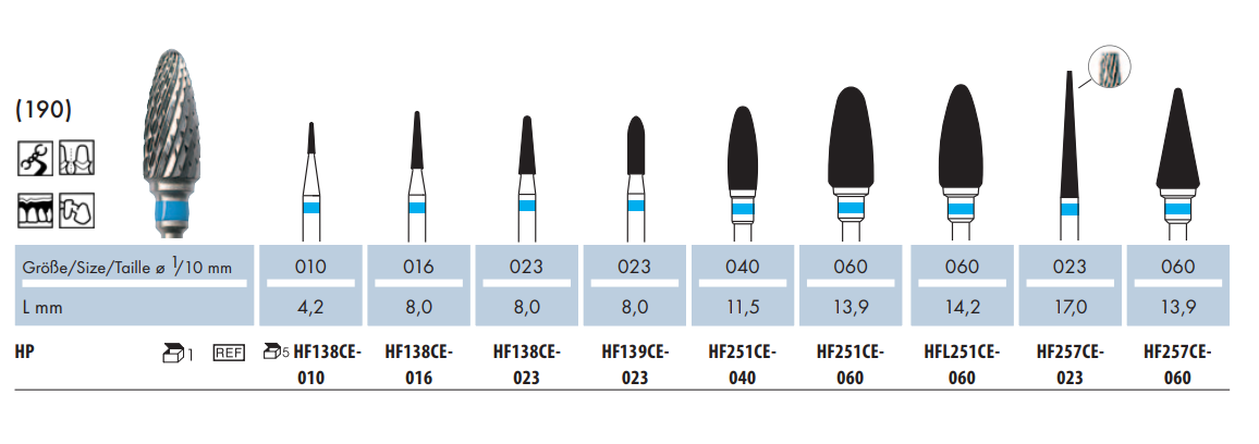 Frez HF139CE-023 to mała torpeda z niebieskim paskiem o ostrzach krzyżowych. Jest to jeden z najbardziej uniwersalnych typów frezów. Służy do opracowywania metalu i akrylu.