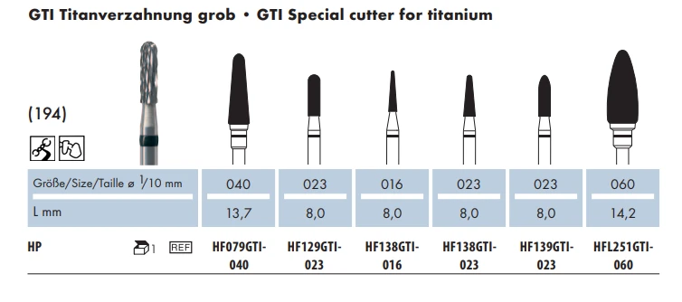 Frez protetyczny HF139GTi-023 "torpeda" do tytanu