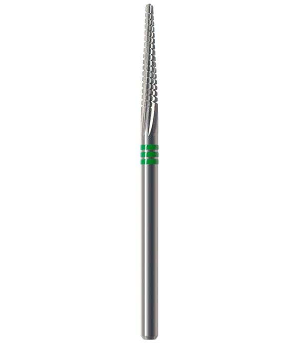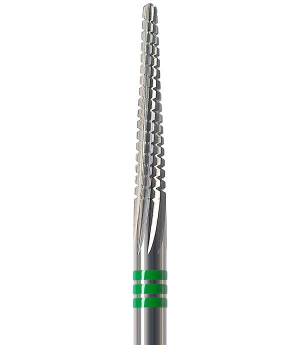 Frez HF261QSCN-023 to długi stożek z trzema zielonymi paskami. Ostrza ułożone są w kształcie "jeżyka".