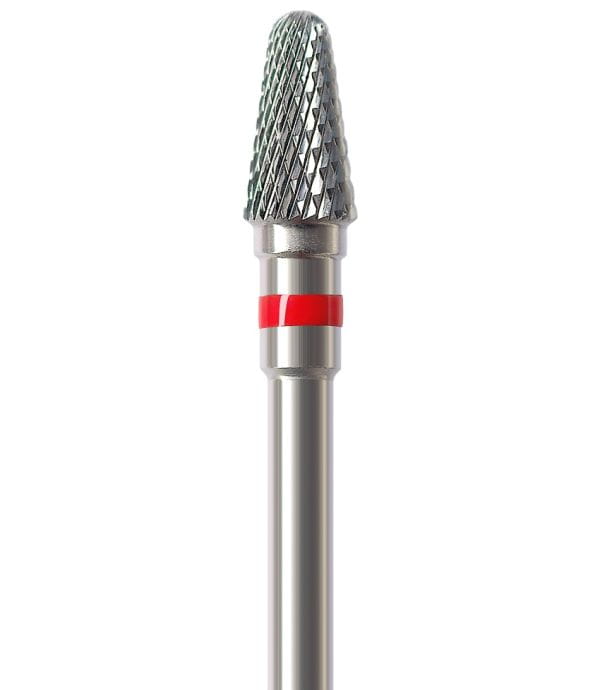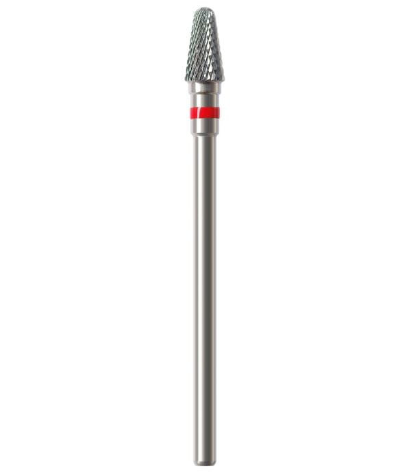 Frez HF351FE to szeroki, zaokrąglony stożek z czerwonym paskiem o płaskich ostrzach krzyżowych. Frez przeznaczony do metalu. Łagodnie zbiera i pozostawia mało porysowaną powierzchnię.