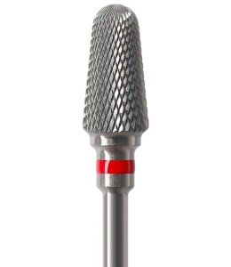 Frez HF351FE to szeroki, zaokrąglony stożek z czerwonym paskiem o płaskich ostrzach krzyżowych. Frez przeznaczony do metalu. Łagodnie zbiera i pozostawia mało porysowaną powierzchnię.