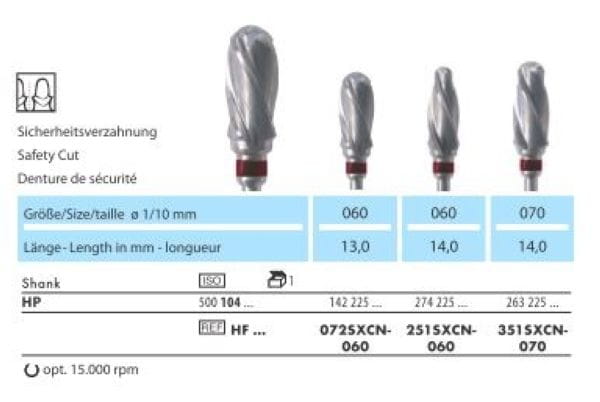 Frezy SXCN dedykowane są wyłącznie do opracowywania modeli gipsowych. Ta linia produktów została specjalnie opracowana z myślą o pracy na modelach gipsowych. Charakteryzuje się nowatorskim opracowaniem krawędzi tnących - ostrza są szersze i łagodnie skręcone w kierunku odwrotnym do wskazówek zegara.