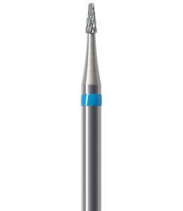 Frez HF390CE-014 to mini stożek z niebieskim paskiem o ostrzach krzyżowych. Dedykowany do zbierania akrylu i metalu.