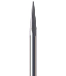 Frez HF515S w kształcie szpicu z ostro zakończonym, czworokątnym czubkiem. Jest to unikalny produkt służący do wycinania kompozytowych płyt bazowych pod protezy i korekty przestrzeni międzyzębowych mostów.