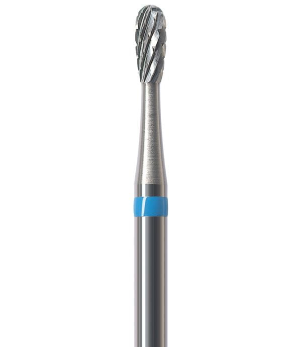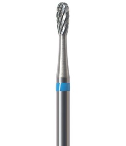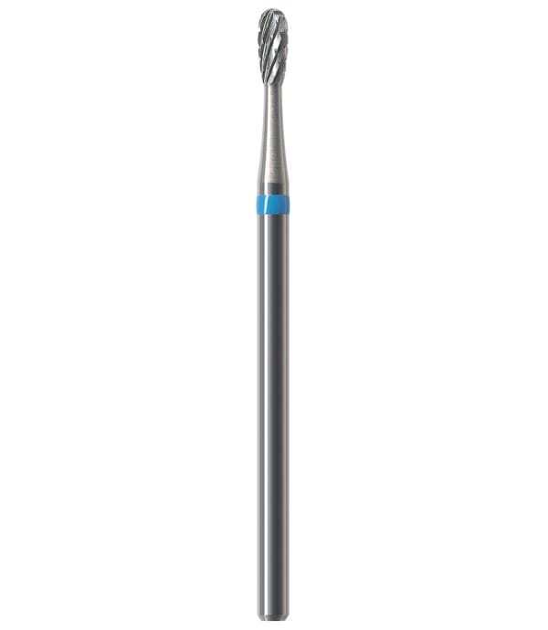 Frez HFL077CE to wydłużona gruszka z niebieskim paskiem o ostrzach krzyżowych, będąca dodatkowym wariantem "standardowych" gruszek oznaczonych HF077CE - ten model różni się od HF077CE-023 o 0,3 mm dłuższą częścią pracującą.