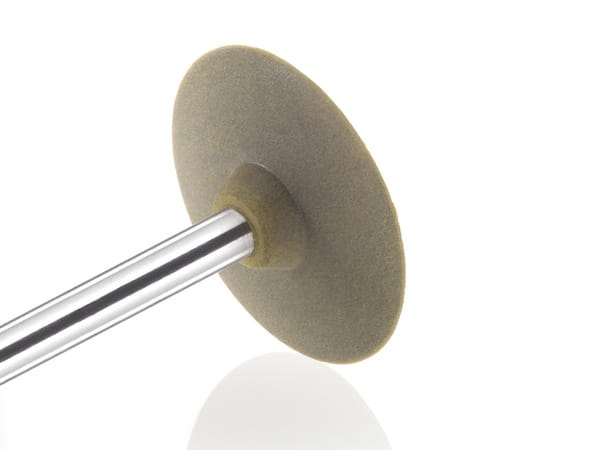 Żółta gumka protetyczna CeraGlaze w kształcie małej soczewki poleruje powierzchnię na połysk po wygładzającej pracy gumki niebieskiej. Polecana szczególnie do pracy na tlenku cyrkonu. Znakomicie sprawdzi się na każdym rodzaju ceramiki, ale także na metalu, w tym do opracowywania tytanu.