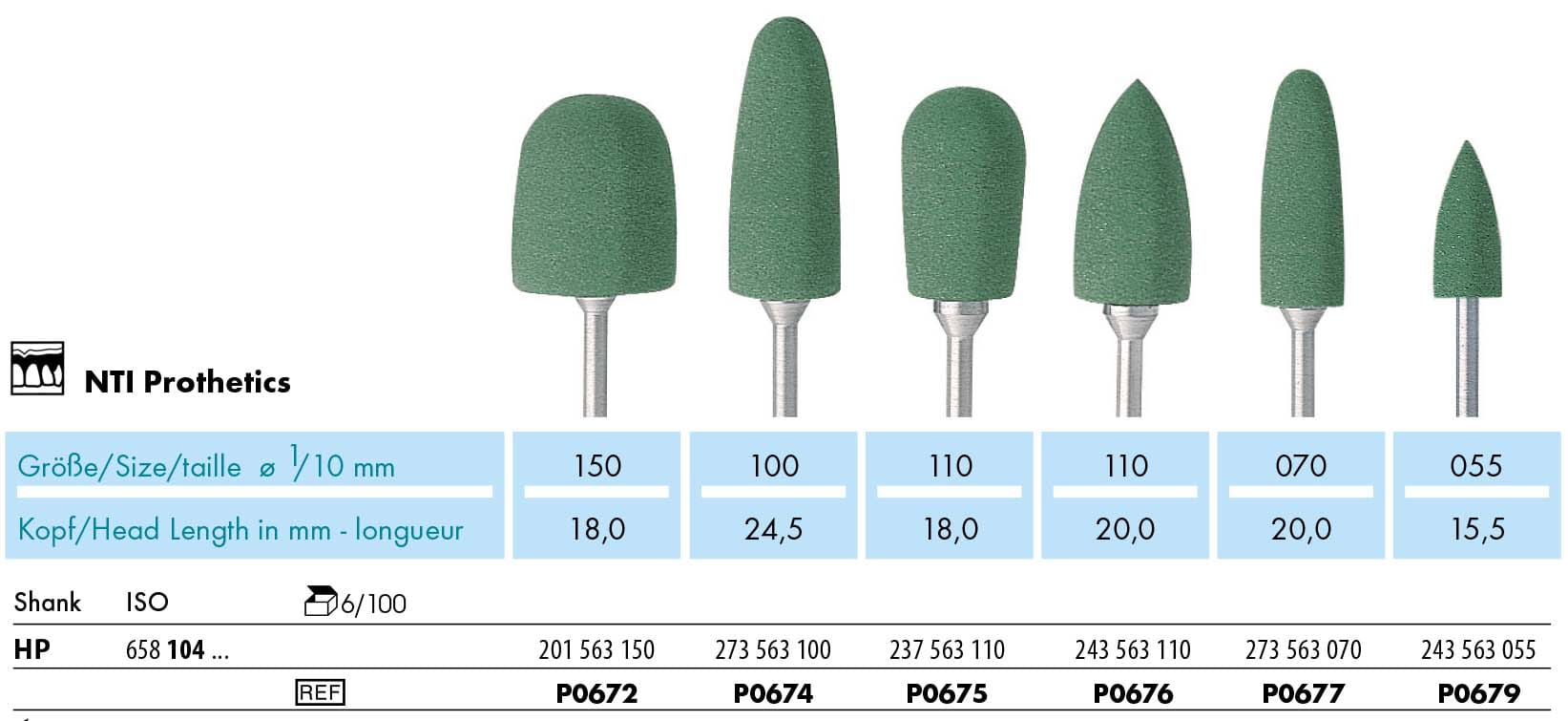Gumka NTI Prothetics do akrylu P0676 zielona "płomyk" - zbierająca