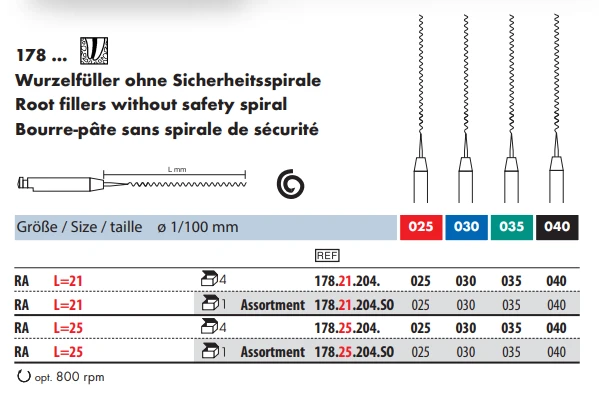 Spiralna część robocza umożliwia równomierne wprowadzanie past, cementów i uszczelniaczy, zapewniając precyzyjne wypełnienie kanału.
