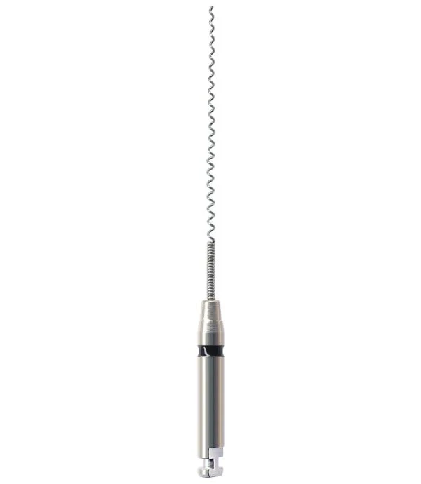 Spiralna część robocza umożliwia równomierne wprowadzanie past, cementów i uszczelniaczy. Sprężynka bezpieczeństwa zwiększa elastyczność instrumentu i pomaga ograniczyć ryzyko złamania podczas pracy obrotowej, absorbując drgania uchwytu podczas umieszczania materiału w kanale.