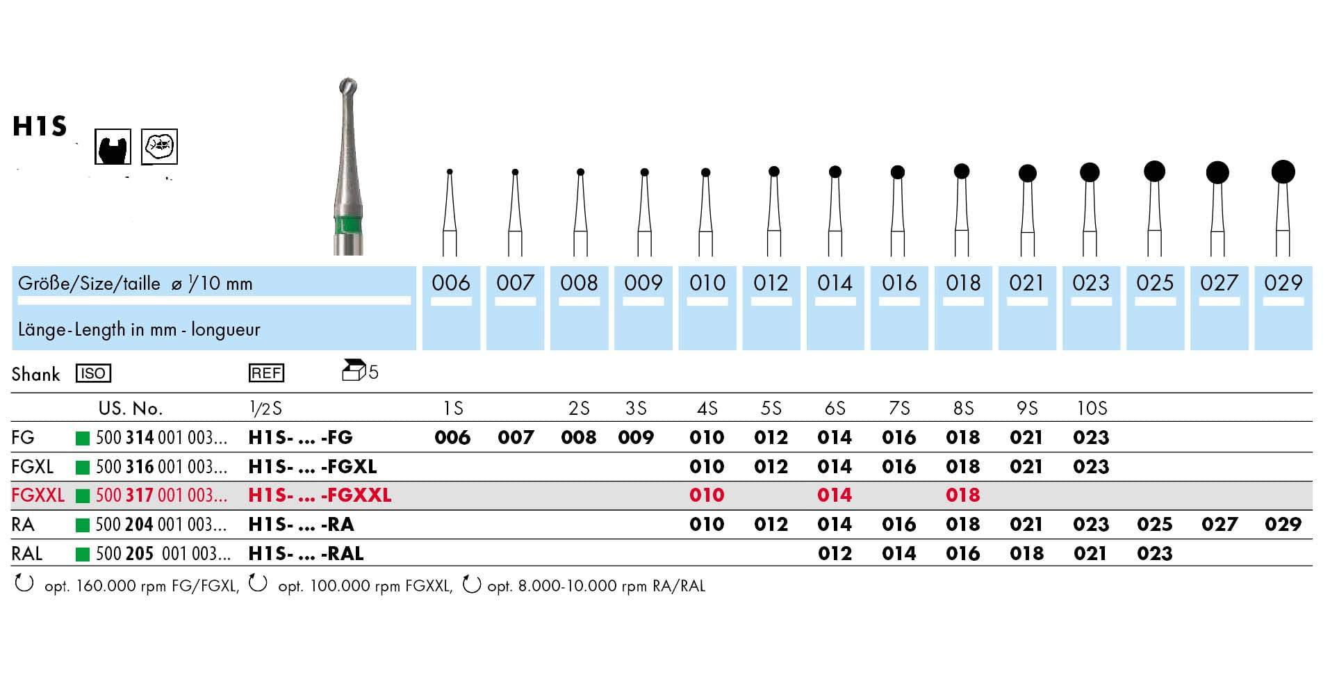 Wiertło różyczka H1S-FG z węglika spiekanego na turbinę / końcówkę przyspieszającą FG (dł. 19 mm)