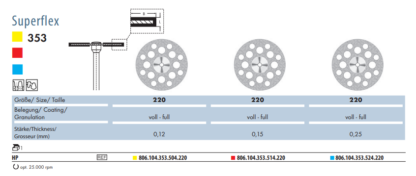 Separator 353 to tarcza o pełnym, dwustronnym nasypie diamentowym do porcelany. Posiada wiele otworów perforacyjnych. Dzięki takiej budowie można kontrolować pole pracy po obu stronach. Polecana do każdego rodzaju ceramiki.