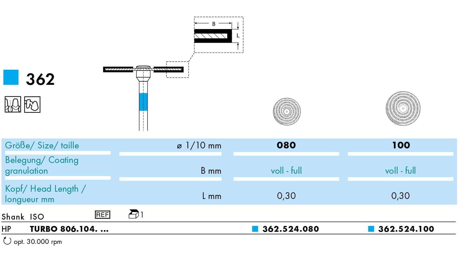Separator 362 TURBO to tarcza o spiralnym nasypie diamentowym na całej swojej średnicy. Spiralne ułożenie nasypu powoduje, że tarcza mimo dużej wydajności jest bardzo delikatna dla opracowywanej powierzchni. Spirala w znacznym stopniu odprowadza ciepło w trakcie pracy. Jest polecana szczególnie do pracy z cyrkonem - do separacji i konturowania.