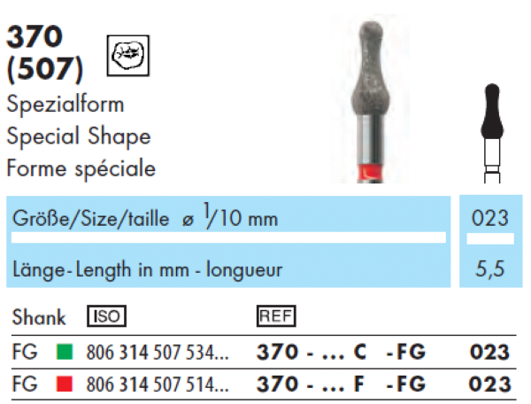 To wiertło w specjalnym kształcie, porównywanym przez producenta do pączka kwiatu, przeznaczone jest do opracowywania ubytku. Oferowane jest tylko w jednym rozmiarze 023 i w dwóch gradacjach nasypu: