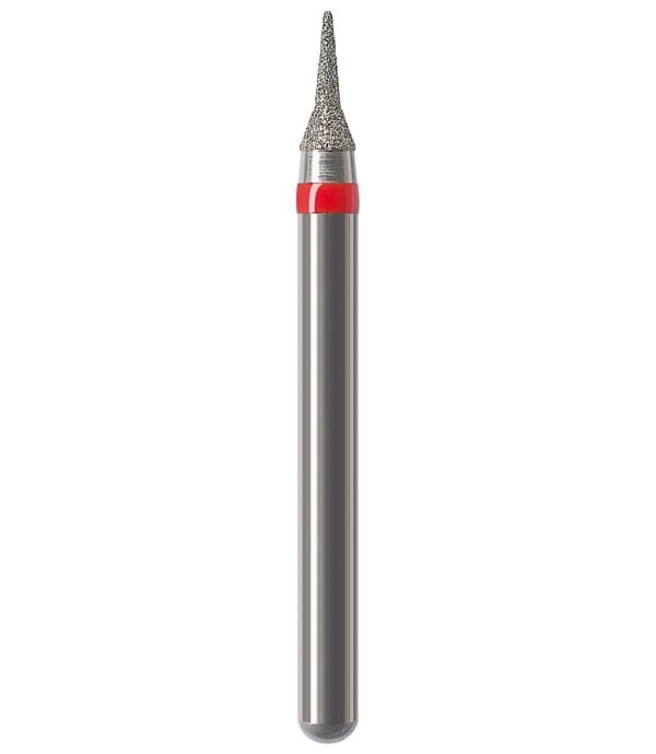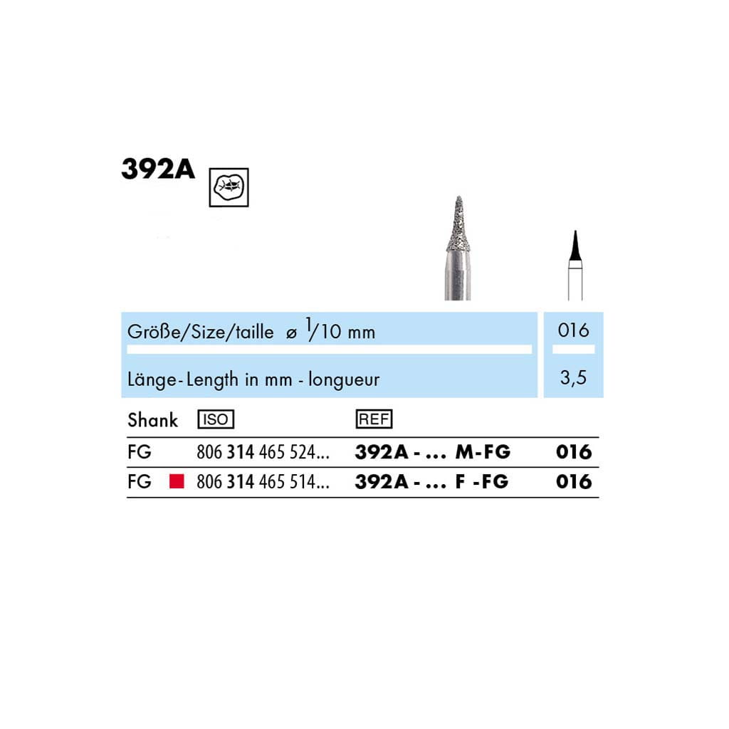 Trochę krótsza wersja 392. Wiertło w kształcie krótkiego szpica z kołnierzykiem u nasady. Dzięki takiej konstrukcji znakomicie się sprawdzi w opracowywaniu ubytków klasy II, a także w polerowaniu kompozytu w tych przestrzeniach. Oferowane jest w jednym rozmiarze: 016 oraz w dwóch gradacjach nasypu: