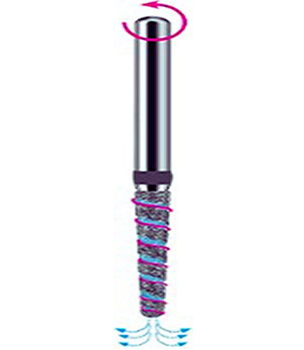 Agresywne wiertło do szybkiego zbierania szkliwa, dedykowane do szlifowania zębów. Innowacyjna, spiralna konstrukcja nasypu wpływa na szybkość pracy i bezpieczeństwo pacjenta. Spiralny nasyp diamentowy zapewnia bezpośrednie chłodzenie się instrumentu w trakcie pracy.