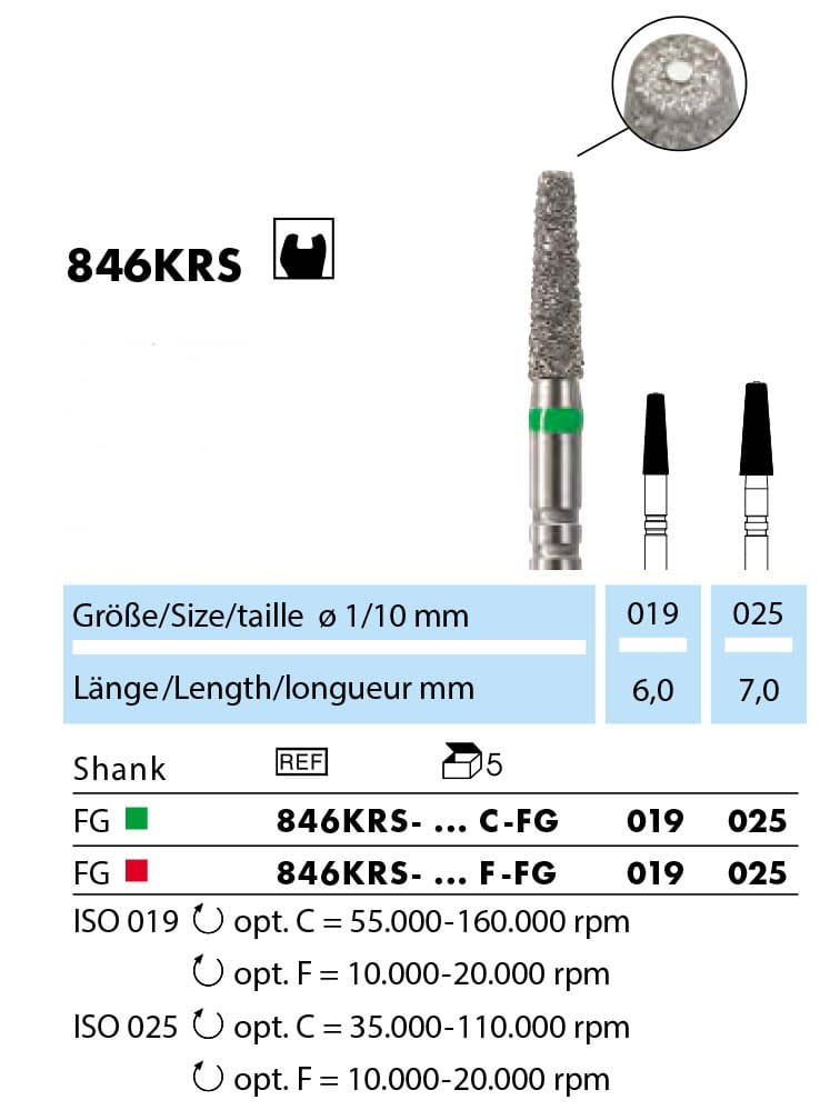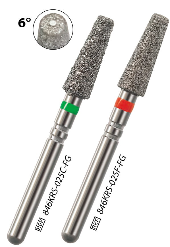 Wiertło w kształcie stożka z łezką na części czołowej. Wiertło przeznaczone do szybkiej, 30-sekundowej preparacji głębokiego ubytku. Idealny wybór do preparacji pod onlay lub inlay. Łezka na części czołowej pozwala na szybkie opracowanie dna ubytku bez niebezpieczeństwa perforowania wejścia do kanału.