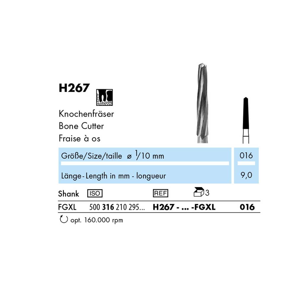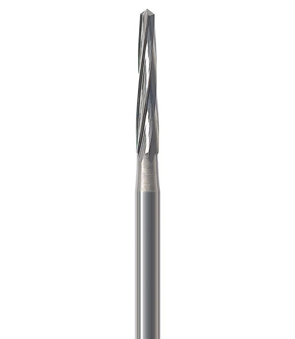 Frez z węglika spiekanego oferowany w jednym rozmiarze 016. Część pracująca w kształcie stożka. Krawędzie tnące lekko skręcone.